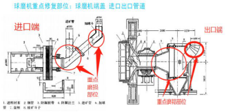 球磨機中空軸既是進礦通道同時又是球磨機端蓋。由于中空軸與進料筒存在間隙,導致礦漿進入中空軸與進料筒之間的空腔,隨著球磨機運行轉(zhuǎn)動磨損中空軸與進料筒,一旦磨穿,就會出現(xiàn)端蓋漏漿現(xiàn)象。