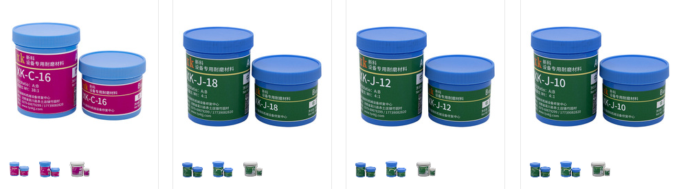 ⑴.將xk-J-12耐高溫耐磨顆粒膠膠按(重量)4:1比例混合攪拌均勻,用加熱后涂覆工具將混合后的修復材料涂于設(shè)備大面積磨損嚴重的部位